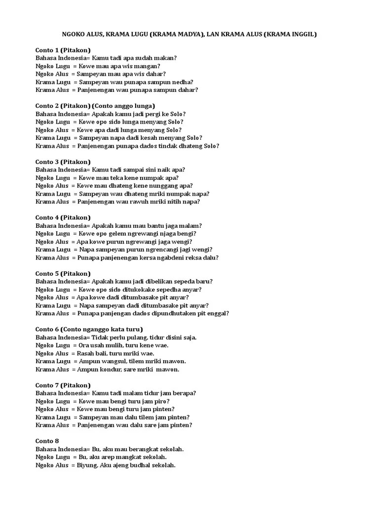 Contoh dialog bahasa jawa krama contoh kat. bahasa jawa mempunyai setidaknya 2 ragam bahasa, yaitu ngoko dan krama. Ragam ngono dan krama masih memiliki pengelompokan yang lebih kecil. Pada dialog di bawah ini terjadi kekagetan dari anto saat membaca sebuah berita mengenai. Kini, proses translate bahasa jawa ke indonesia otomatis, aksara, krama alus &